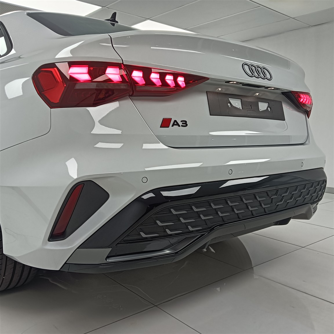 REF:330187/0 INTRODUCING THE AUDI A3 SEDAN 35 TFSI 110KW TIPTRONIC S LINE 5 YEAR 100 000KM MAINTENANCE PLAN, S LINE, GLOSS BLACK FRONT AND REAR BUMPER TRIMS, GLOSS BLACK SIDE SILLS, GLOSS BLACK WINDOW TRIMS, INFOTAINMENT PACKAGE, AMBIENT LIGHTING PACKAGE PRO, 18" TWO TONE DIAMOND CUT ALLOY MAG WHEELS, PANORAMIC SUNROOF, ELECTRIC WINDOWS, ELECTRIC MIRRORS, INTERIOR “S” WITH SPORT SEATS IN LEATHER, “S” FLAT BOTTOM LEATHER MULTI FUNCTION STEERING WHEEL, CRUISE CONTROL, MULTI MEDIA TOUCH SCREEN INFOTAINMENT SYSTEM, ANDROID AUTO, APPLE CAR PLAY, BLUETOOTH, USB SLOT, NAVIAGTION, WIRELESS CHARGING DOCK, C TYPE CHARGING PORTS, PUSH TO START BUTTON, REVERSE CAMERA, AUDIS DRIVE SELECT - EFFICIENCY, COMFORT, AUTO, DYNAMIC AND INDIVIDUAL DRIVING MODES, SPORTS DRIVING MODE, ECO STOP START FUNCTION, TRACTION CONTROL, STEERING PADDLE SHIFTS, SONOS 3D PREMIUM SOUND SYSTEM PRICE IS SUBJECT TO AFS(GFV) AND TRADE IN PRICE EXCLUDES LICENSE COST AND ON THE ROAD FEES. "E AND OE"